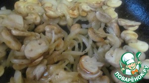 2. Грибы с луком порезать, обжарить на сковороде на растительном масле.