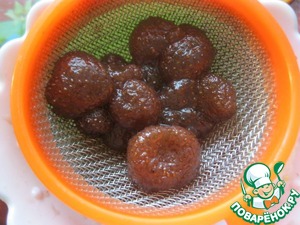 Ягодки из варенья откидываем на ситечко, чтобы стекла жидкость - она здесь не нужна.
