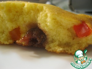 Выливаем тесто в смазанную маслом форму, равномерно распределяем ягоды и цукаты (важно делать это на данном этапе, а не вмешивать в тесто, чтобы не раздавить ягоды), вилочкой вдавливаем в тесто, часть можно оставить на поверхности. И не забудьте добавить свою любовь! ;)