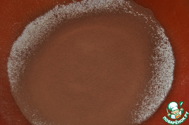 • Смешиваем муку, соль, соду, ванилин, какао.