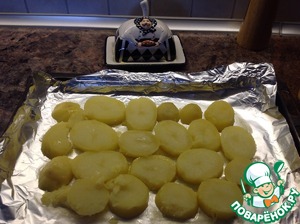 Выложить сверху вторую половину картофеля, закрыть плотно фольгой и в духовку на 20 мин. разогретую до 200*С... а пока...