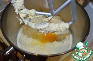 Размягченное слив. масло взбить миксером в пышную пену. Добавить 200 грамм сахара, ванилин и взбивать, пока сахар почти не растворится.