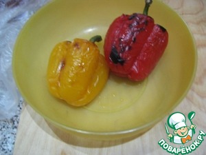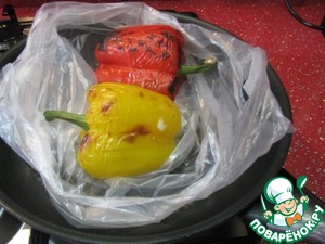 Наши перцы готовы, достаем и перекладываем в целлофановый пакет, завязываем и даем полностью остыть,