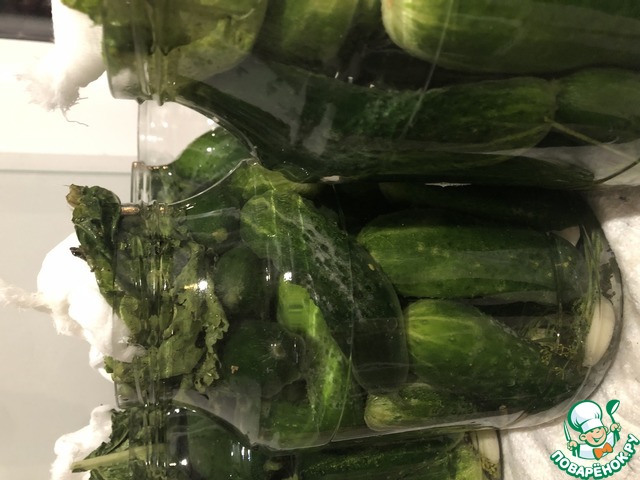 Через 3 дня убрать узелок, хорошо промыть укроп и лист хрена, которые находились сверху.