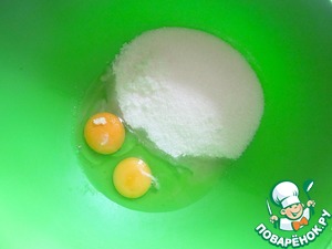 Приготовим бисквит. Растираем яйца с сахаром и ванильным сахаром.