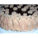 Когда мы уже подошли к концу, то последний слой должен быть бисквит и сверху сметана. На этом этапе выглядит совсем не красиво, но поверьте, когда вы его вытяните из холодильника то будете в восторге!)