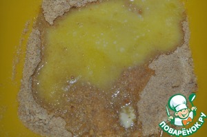 В крошку измельчаем печенье. Высыпаем в миску печенье и размягченное сливочное масло, перемешиваем.