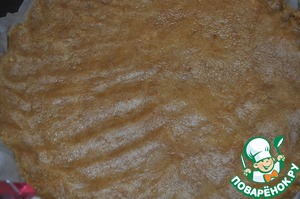 Разъемную форму для торта застилаем пергаментной бумагой и выкладываем полученное тесто из крошек на дно формы, тщательно утрамбовывая. Убираем на 30 минут в холодильник.
