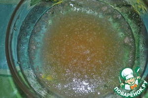 Заливаем желатин водой (100 мл) и оставляем набухать на 10 минут. После чего ставим на маленький огонь и подогреваем до полного растворения желатина и оставляем остывать.