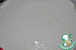 Завариваем желе по инструкции к нему ( количество воды на 100 мл меньше и оставляем остывать. Выливаем на застывший слой наше желе и ставим готовый торт в холодильник еще 4–5 часов, чтобы все слои полностью застыли. Если нужно срочно, то хотя бы что б часик постоял.