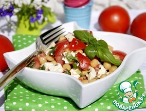 Сытный, сочный салат с пикантными и свежими нотками - прекрасный вариант обеда или ужина жарким летом.