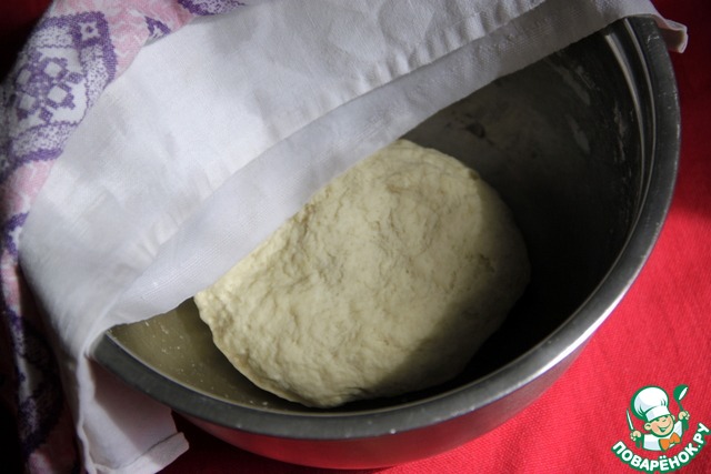 Замесить мягкое тесто и накрыть слегка влажным полотенцем. Оставить отдыхать на 30- 40 мин.