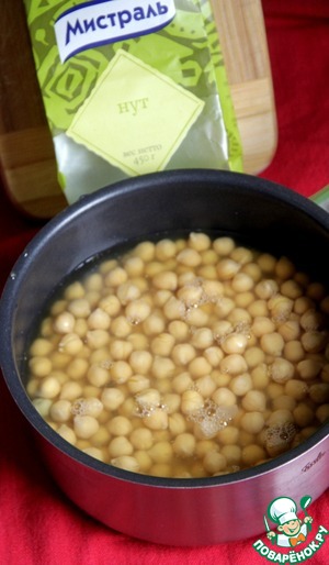 Заранее замоченный (на 24 часа) и отваренный (до готовности) нут - процедить и охладить.