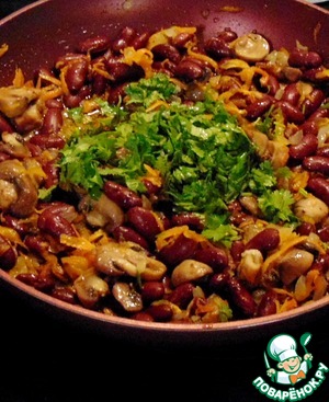 Добавить фасоль, кинзу, соль, хмели -сунели.
