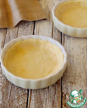 Укладываем на дно формы тесто, делая небольшие бортики. Излишки теста обрезаем. -