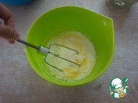 В небольшой миске вбиваем яйцо, добавляем масло и молоко. Перемешиваем венчиком или ложкой. |