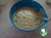 В миску с сухой смесью вливаем жидкую и перемешиваем до однородности, с небольшими комочками. Добавляем смородину и снова перемешиваем. |