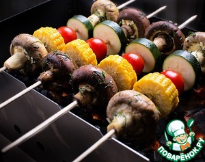 ... или замашка на вегетарианскую кухню. В любой другой раз вегетарианцы и мясоеды бы разделились на 2 лагеря, но любовь к шашлыку объединяет людей. Кто сказал, что шашлык должен быть обязательно из мяса? Кстати, овощи на углях вполне себе достойная еда. Особенно для любителей посидеть на диете.