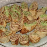 Закусочные рулеты-канапе с мексиканским вкусом для праздничного фуршетного стола. Делаются за день до подачи. Прекрасно подходят для вечеринки в мексиканском стиле. Если вы не можете найти тортилью, такие же рулеты можно сделать с тонкими блинчиками.