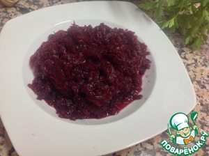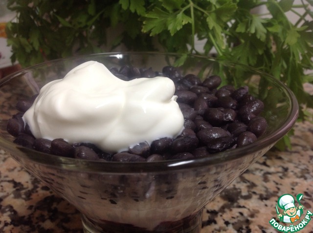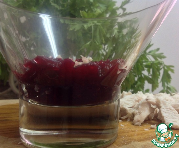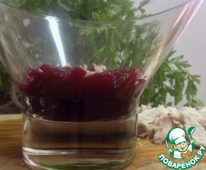 Когда все ингредиенты подготовлены, начнем собирать салат слоями: свекла, чеснок, сметана