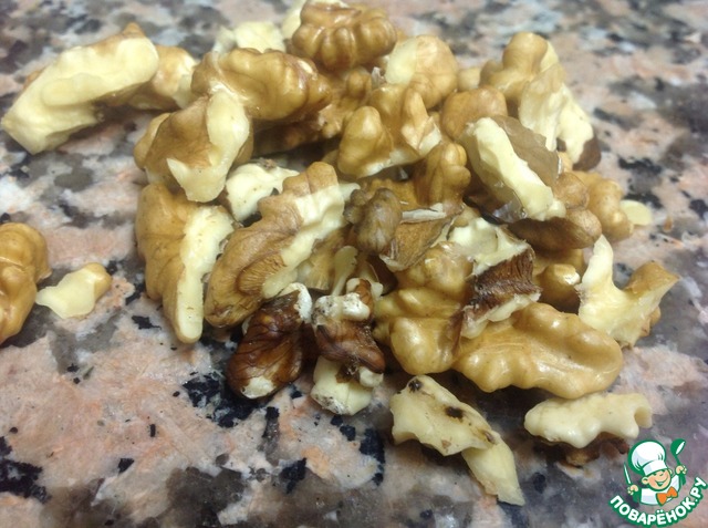 Грецкие орехи очистить от скорлупы и крупно порубить