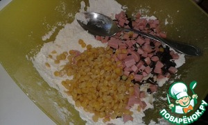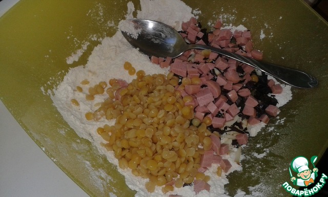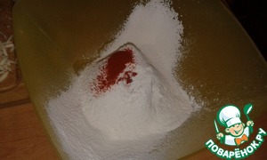 Муку просеять, добавить паприку, соль и разрыхлитель