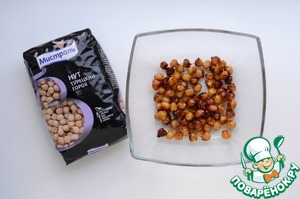 В сковороде прогреть оливковое масло, всыпать нут, немного обжарить, добавить мед, соль и лимонный сок. Помешать. Дать нуту карамелизоваться.