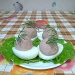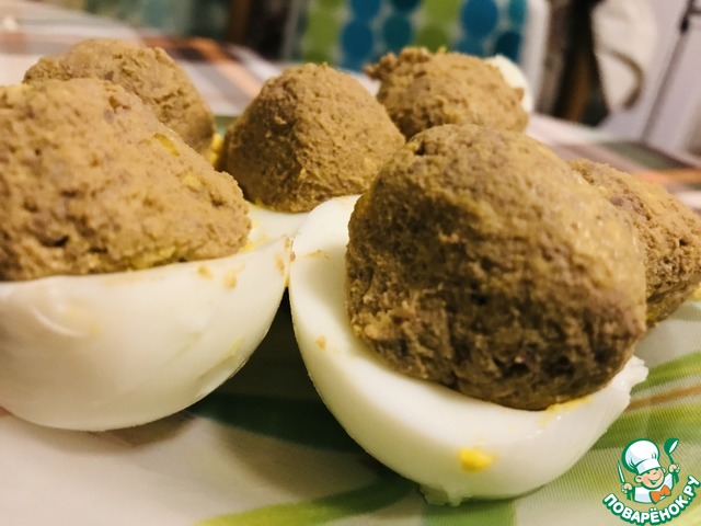 Ингредиенты для «Яйца, фаршированные куриной печенью»:
