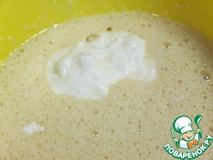 Добавляем йогурт, растительное масло, взбиваем миксером на небольшой скорости