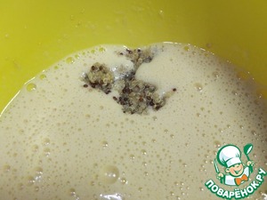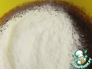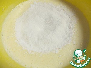 Продолжая взбивать добавляем муку, крахмал, разрыхлитель