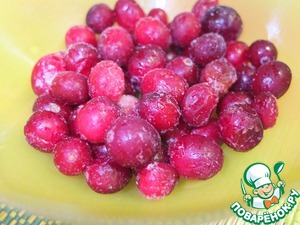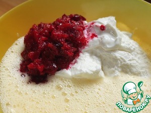 Добавляем творог и клюкву. Перемешиваем, отставляем в сторону.
