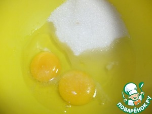 Яйца взбиваем с сахаром и ванильным сахаром до пышности