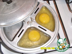 Положить в формочки сливочное масло и вбить яйца, посолить и закрыть крышкой