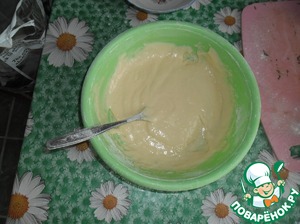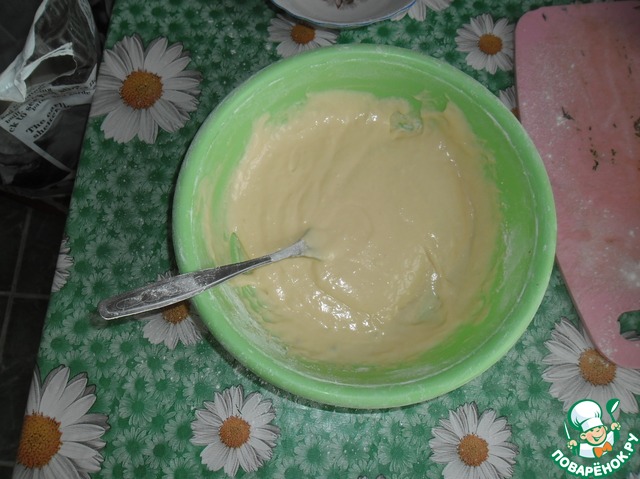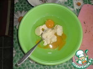 • Отдельно готовим жидкое тесто: 2 яйца, 4 ст. л. майонеза и 4 ст. л. сметаны взбиваем.