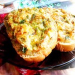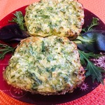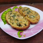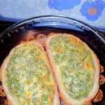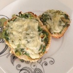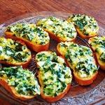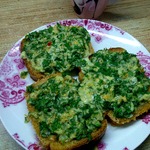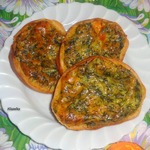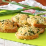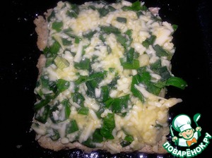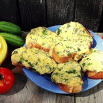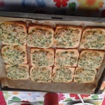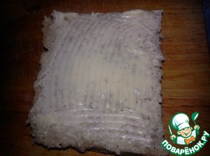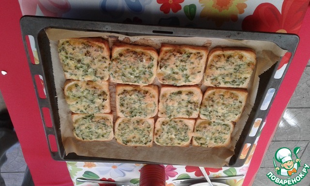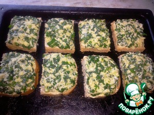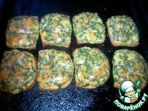 Далее выложить на каждый кусочек по 1 ст. ложке с горкой сырной смеси.