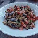 Простой, но очень вкусный салат из баклажан и помидоров под майонезом.