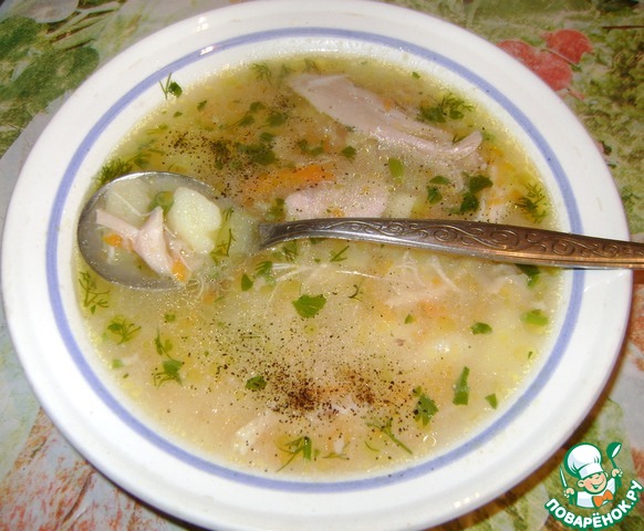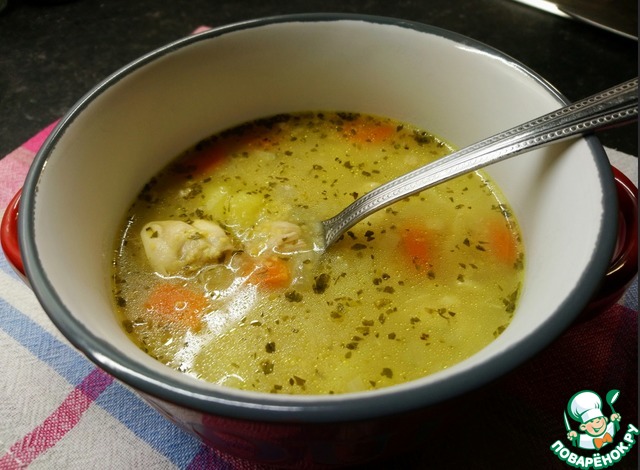 Рецепт «Суп на курином бульоне с кукурузной крупой»: