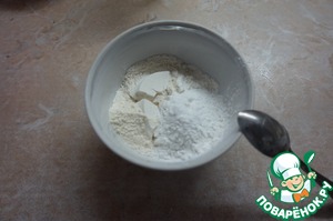 Смешиваем сухие ингредиенты: муку, крахмал, разрыхлитель.