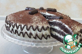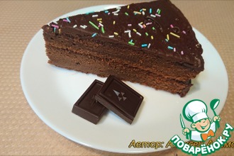 Накрываем вторым коржом, пропитываем его сахарным сиропом. Оставшийся кремом смазываем верх торта. Накрываем пищевой пленкой и отправляем в холодильник на 8 часов.