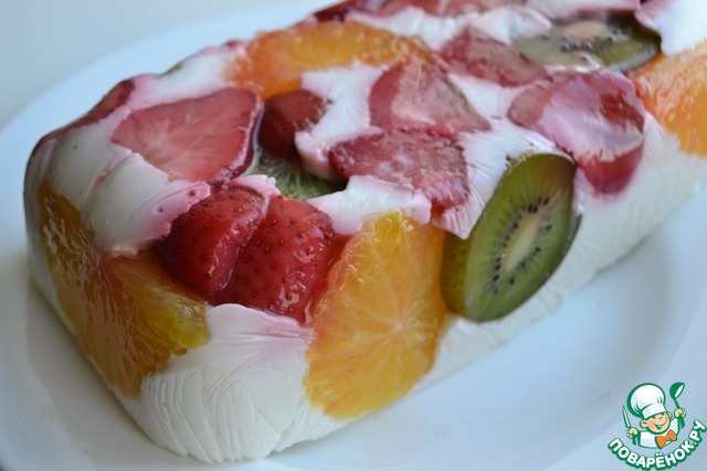 Делала диетический вариант с йогуртом, и всё равно вкусно. Использовала ягоды (малина, черника, клюква), банан, сливы и инжирный персик. Сливы и персик без кожи. Учитывая, что сахара бросила совсем чуть-чуть (1 ст. ложка), то сладкие фрукты - самое то. Боялась, что не застынет - но всё ок