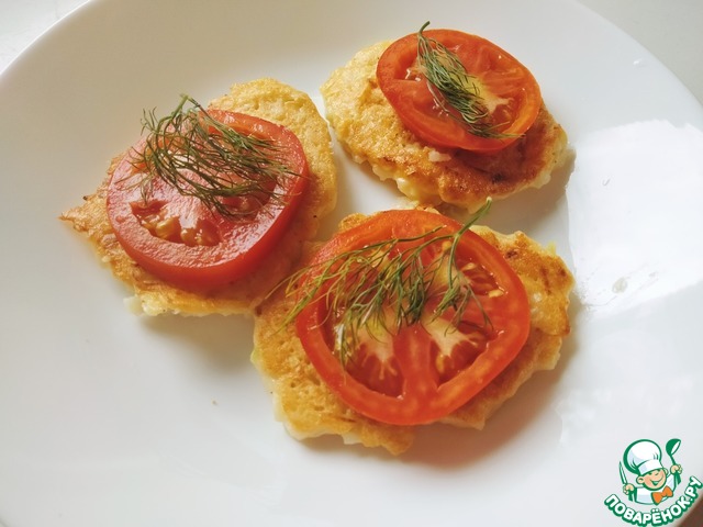 Подаем с помидорами, зеленью и соусом ( сметана, чеснок, зелень, соль).