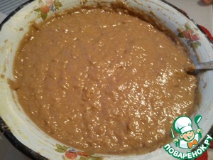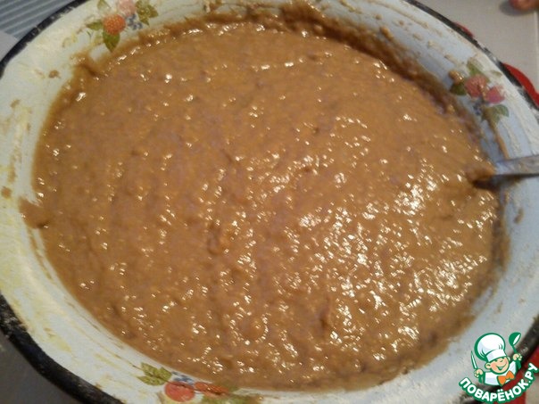 Добавляем муку, все тщательно перемешиваем. По консистенции должно получится вот такое тесто.