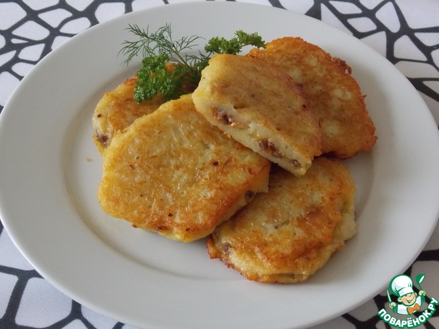Рецепт «Картофельные оладьи с мясным секретом»:
