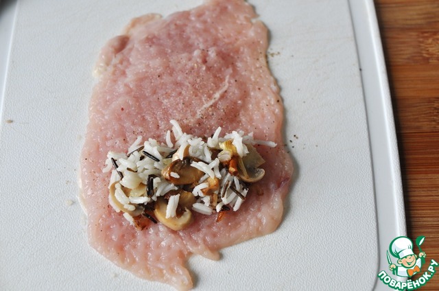 Рецепт «Куриные рулетики с рисом и грибами»: