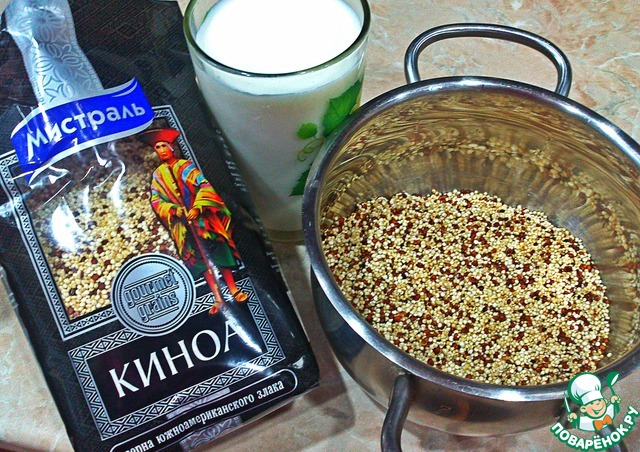 Киноа тщательно промыть, залить молоком (или водой), довести до кипения и варить на слабом огне до готовности. Остудить.