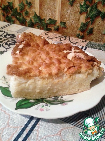 Это песочный яблочный пирог с нежнейшей прослойкой из взбитого белка. Вкус очень нежный, сам пирог рассыпчатый. Название придумали сами много лет назад, т. к. в семье несколько вариантов яблочных пирогов и шарлоток, то чтобы определить про какой идет речь, само собой придумалось название из-за этой самой прослойки.
