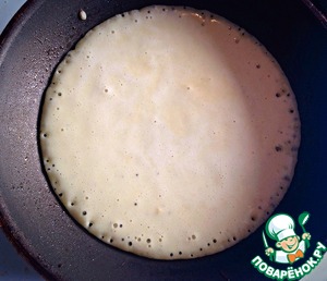 Теперь жарим блинчики на разогретой, смазанной оливковым маслом, сковороде.