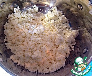 Творог необходимо протереть через сито. Именно так, взбивать в блендере не рекомендую, иначе в тесте не будет крупинок творога. -