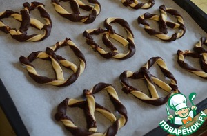 Тесто нарезать на полоски и каждую скрутить и придать форму кренделька.