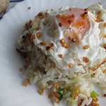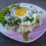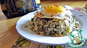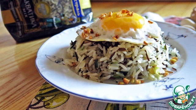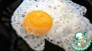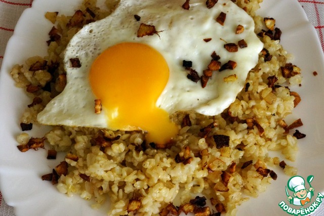 Пока жарится рис, на другой сковороде делаем яичницу. Такую, какую вы любите.